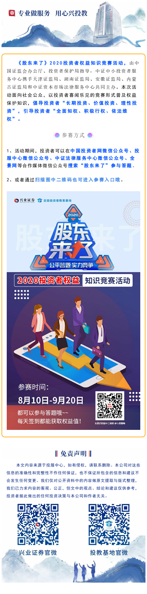【股东来了】兴业证券古田投教基地邀请您参加2020“股东来了”投资者权益知识竞赛