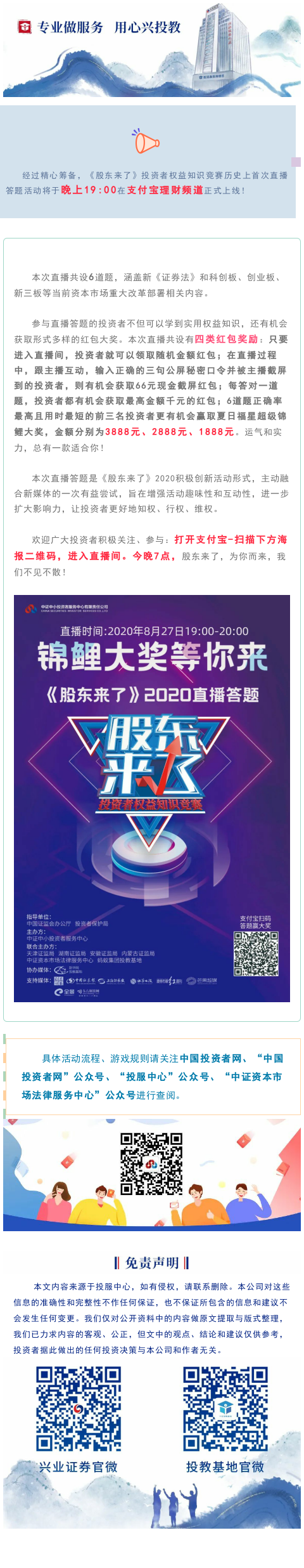 【股东来了】股东来了直播答题——晚上19:00首秀!