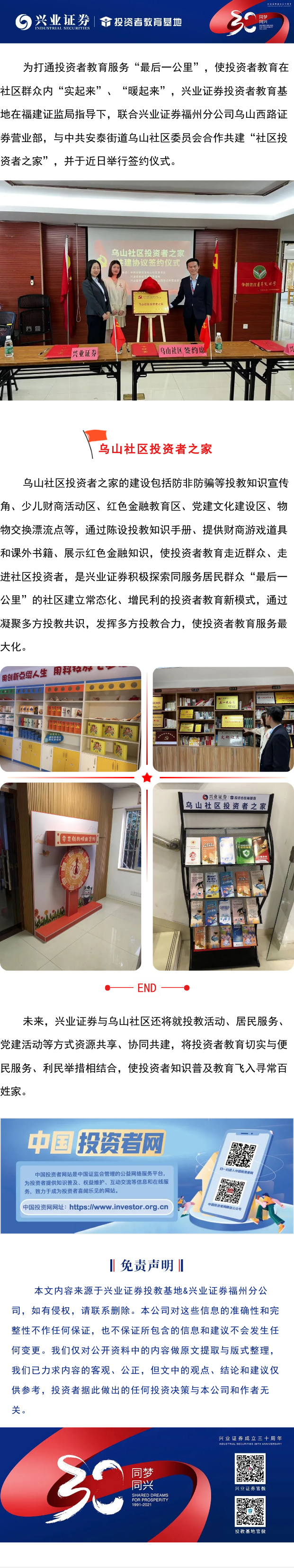 【兴·动态】兴业证券与乌山社区共建“投资者之家”