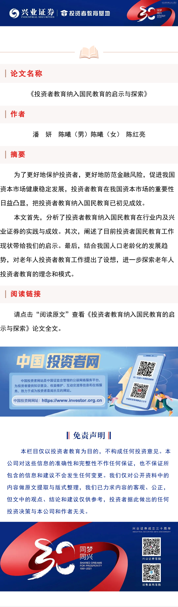 【兴·风采】《投资者》第9辑 | 投资者教育纳入国民教育的启示与探索