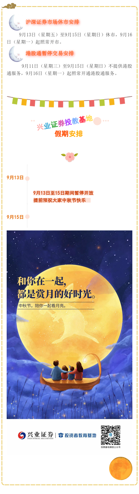 【投教·兴公告】关于中秋节休市安排及投教基地假期安排时间表出炉啦