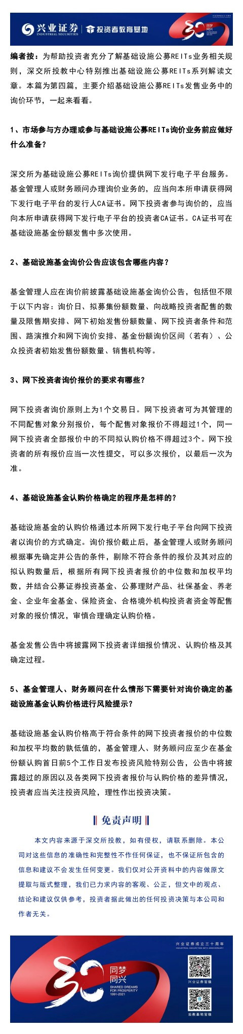 【兴·原创】基础公募设施REITs投资者入市手册 第四十二期 | 什么是询价交易?(2024-04-22 13:53:57.0)