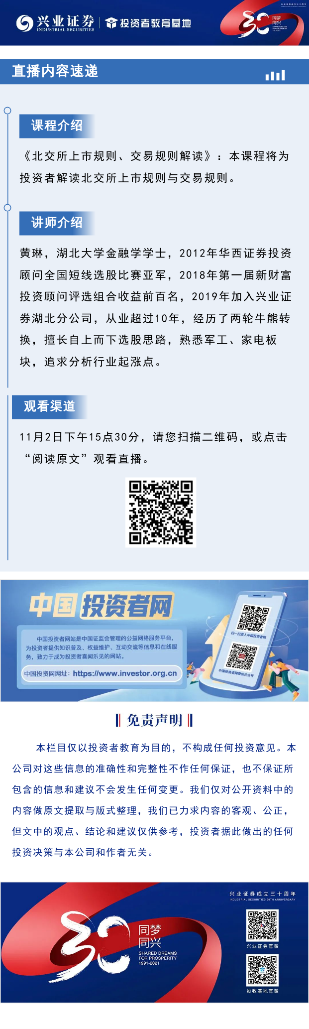 【兴·预告】15:30直播 | 北交所上市规则、交易规则解读