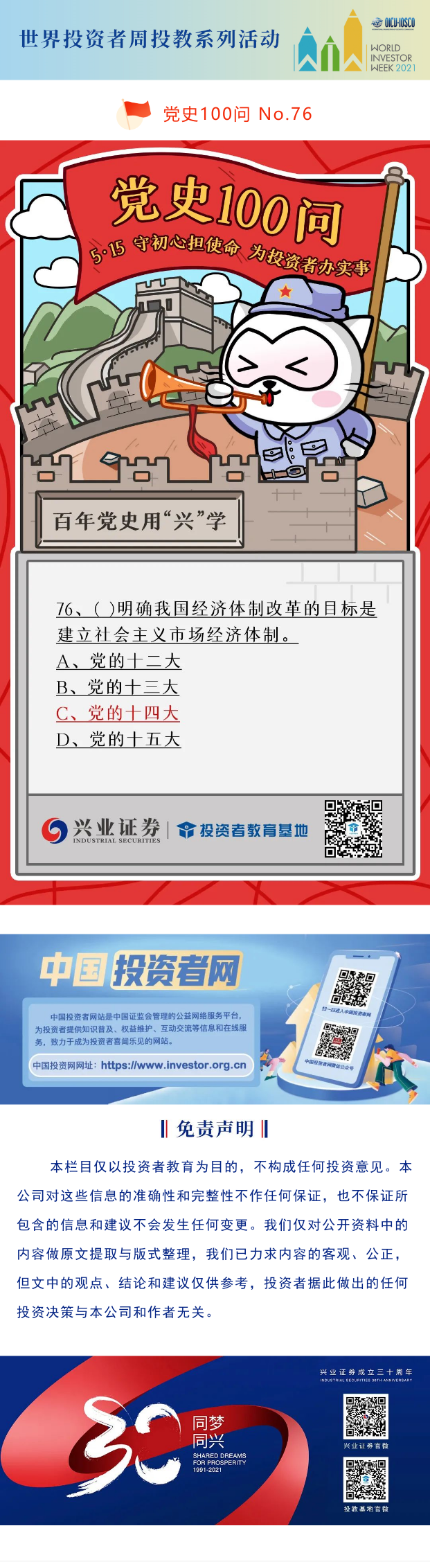 【世界投资者周】党史100问 | 党史天天学No.76
