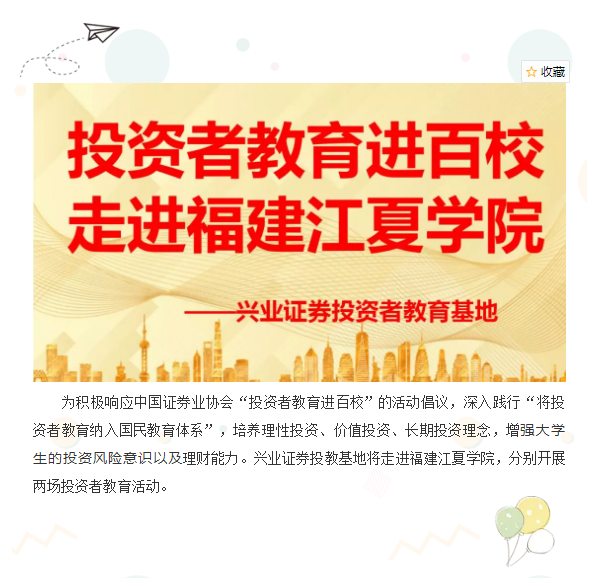 【投教·兴预告】投资者教育走进百校——走进福建江夏学院