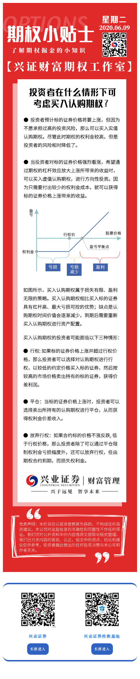 【投教·期权小贴士】投资者在什么情形下可考虑买入认购期权