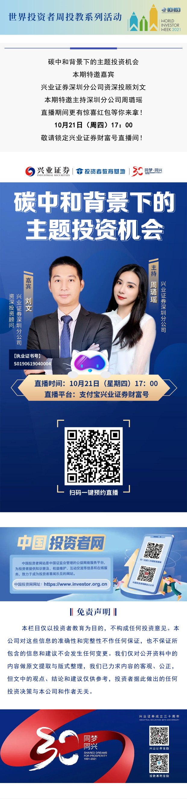 【世界投资者周】财富号重磅直播 | 碳中和背景下的主题投资机会