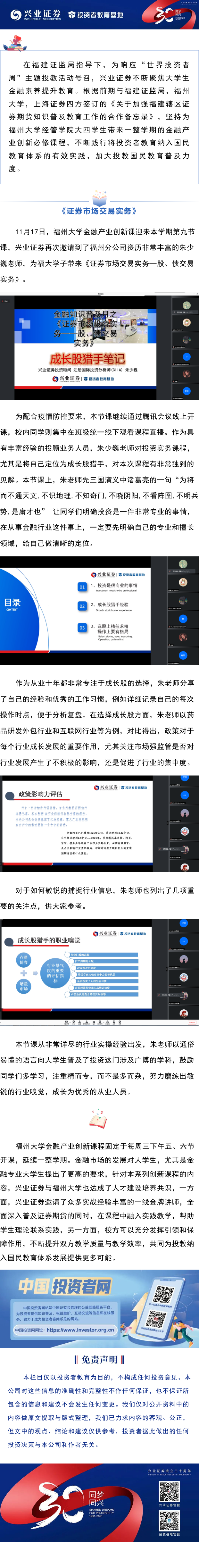 【兴·风采】兴业证券-福州大学金融产业创新课之《证券市场交易实务—股、债交易实务》