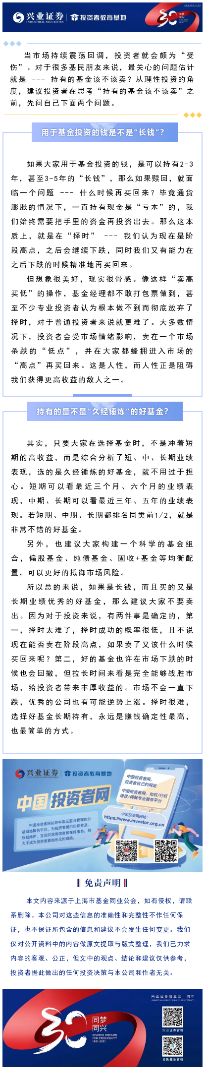 【兴·原创】市场下跌,我该卖基金吗?