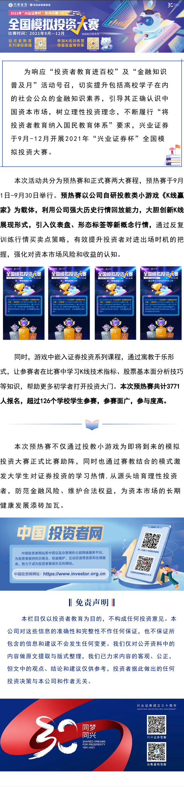 【兴·风采】2021年“兴业证券杯”全国模拟投资大赛(预热赛)顺利举行