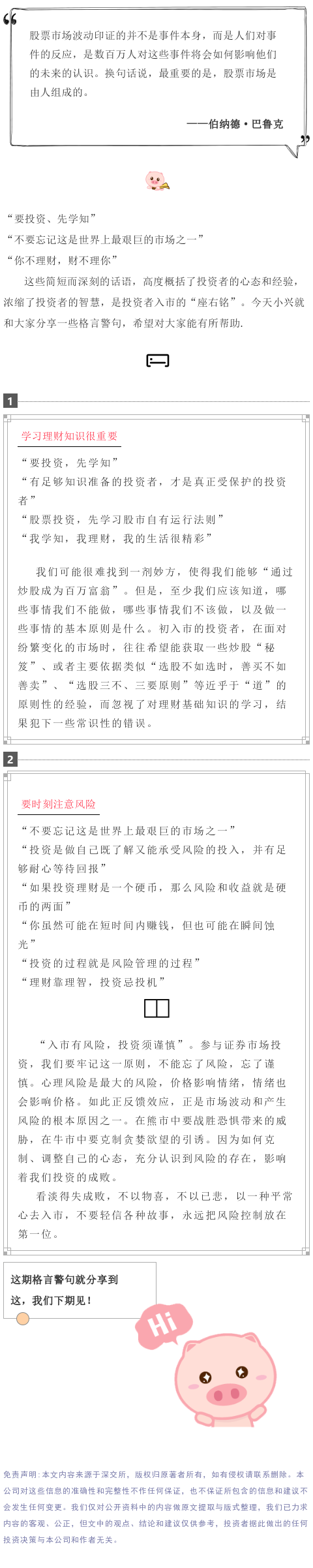 【投教·理财格言】遵守投资纪律,理财格言可以帮到你(一)