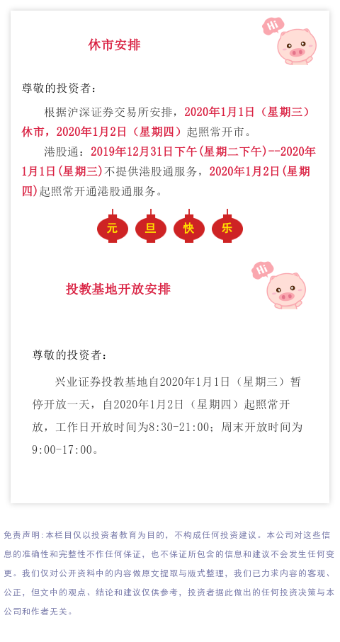 【投教·兴公告】元旦假期休市安排以及基地开放安排