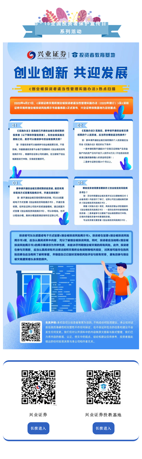 【投教·创业板】创业创新 共迎发展 |《创业板投资者适当性管理实施办法》热点扫描