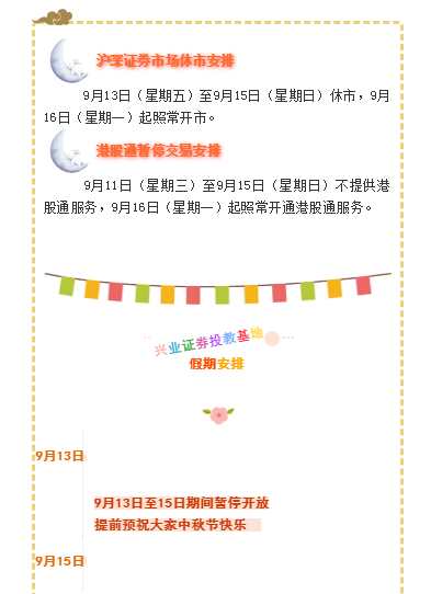 【投教·兴公告】关于中秋节休市安排及投教基地假期安排时间表出炉啦
