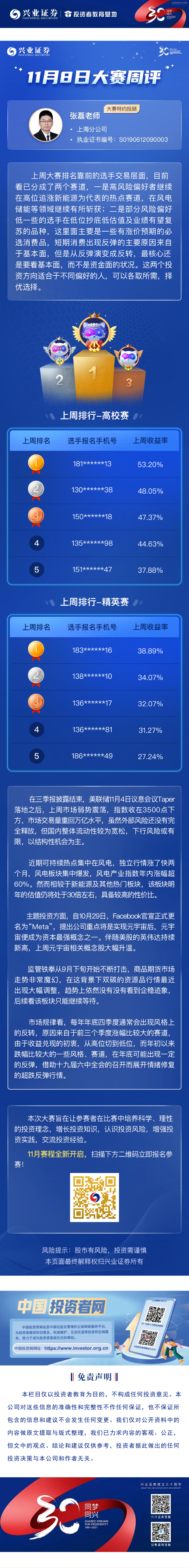 【全国模拟投资大赛】大赛黑马频出,戳进来查看11月第一周榜单!