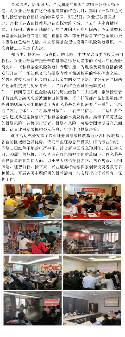 【投教·活动】兴业证券“迎国庆70周年闽西红色金融暨私募基金风险防范专题讲座直播活动”顺利开展