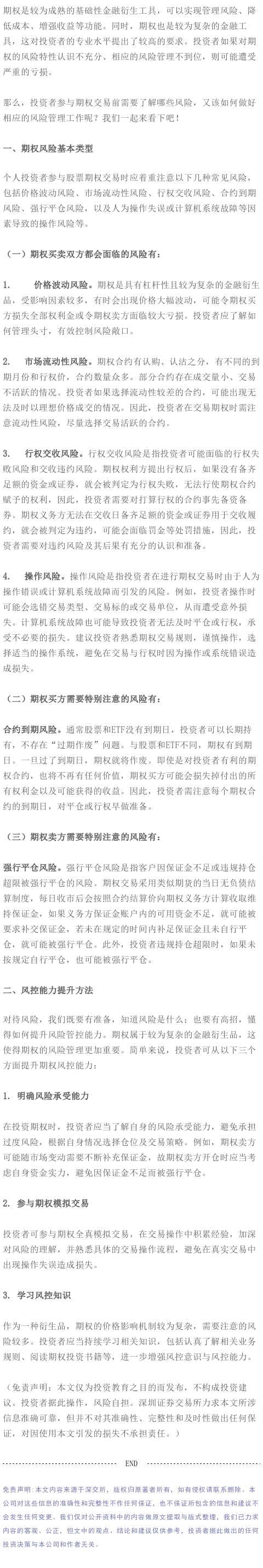 【投教·股票期权】深市期权投教 | 期权风险管理知多少