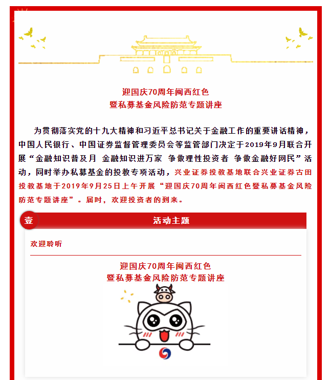 【投教·兴预告】迎国庆70周年闽西红色暨私募基金风险防范专题讲座即将开始